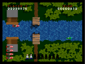 The game is easy to play but difficult to master. Navigate your speedboat along the river avoiding or destroying the various hazards. Land at a jetty on the North bank and rescue a scientist. Further down the river land at the South bank and your scientist will scurry off to safety. Dare you gamble and carry more than one scientist at a time? One false move and they'll all end up in that big laboratory in the sky!